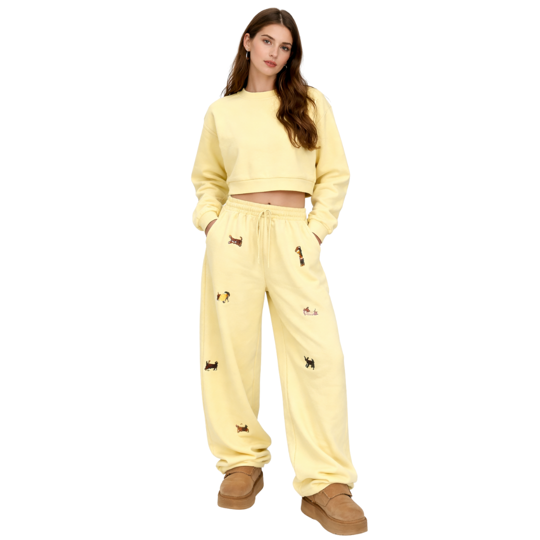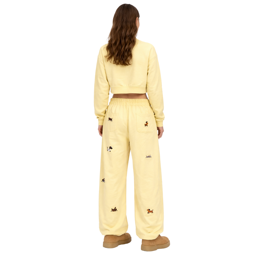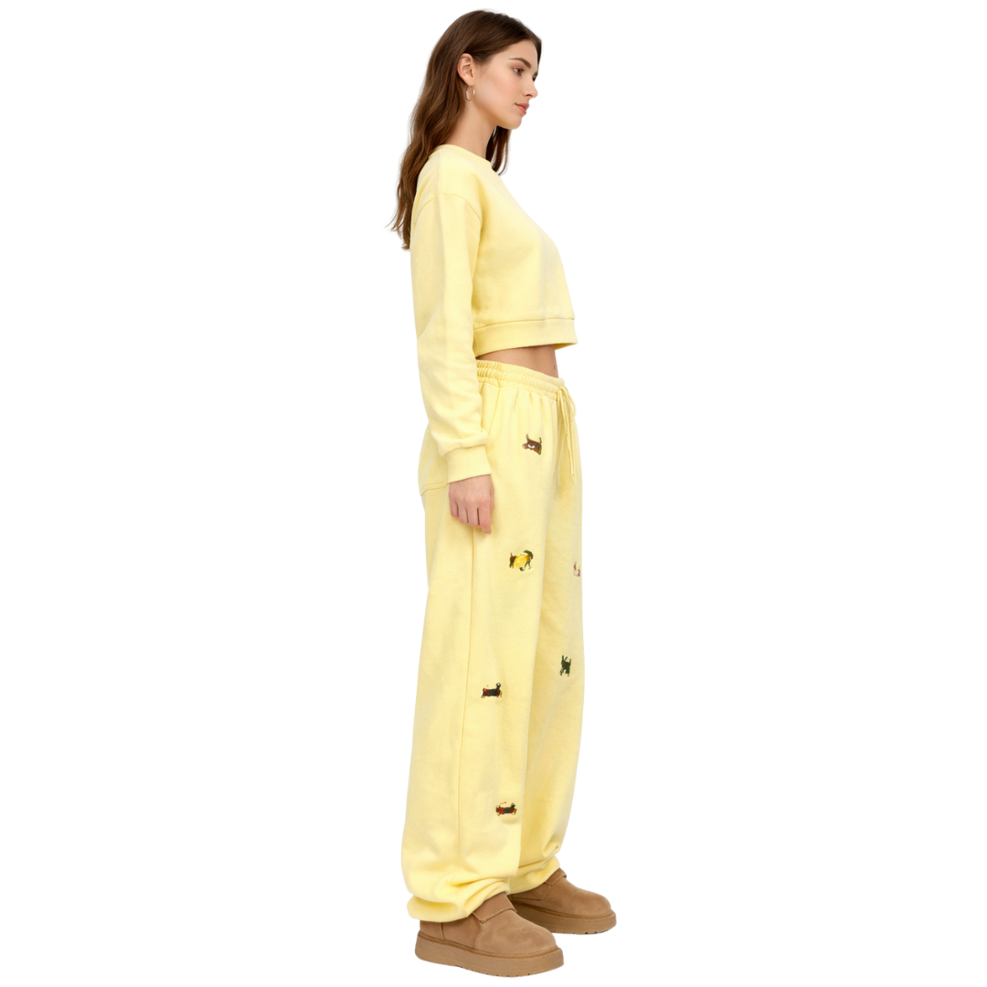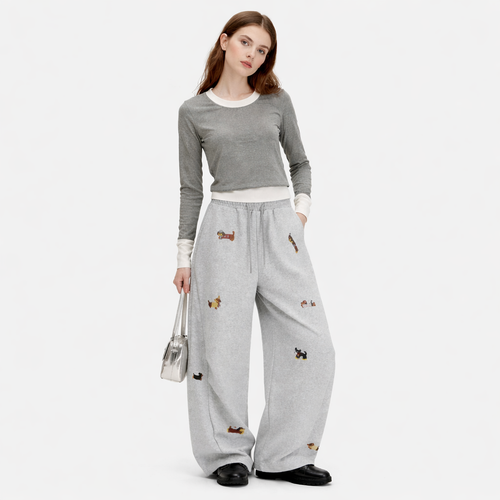 Bordados de perros multicolor: detalle con carácter, no un estampado plano.